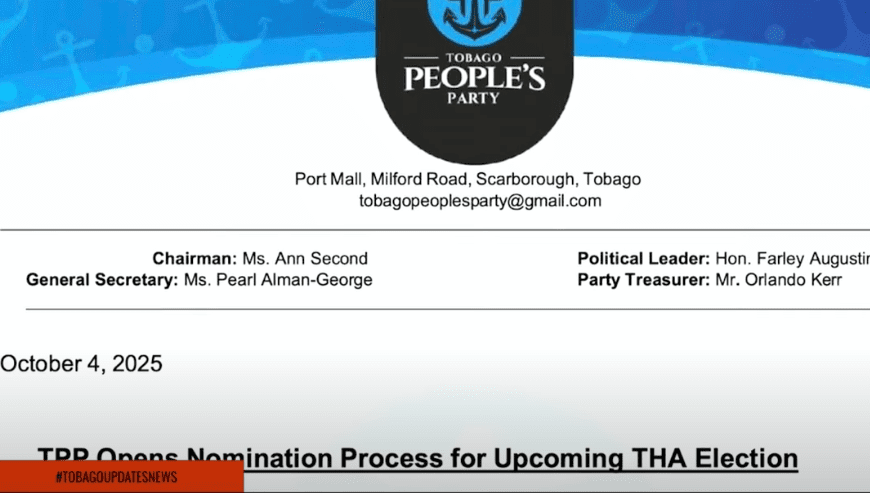 October 6th, 2025- The Tobago People’s Party (TPP) has officially opened the nomination process for all fifteen seats in the upcoming Tobago House of Assembly (THA)...