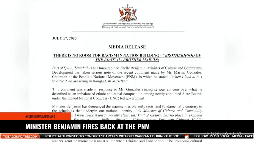July 18, 2025 – Michelle Benjamin, Minister of Culture and Community Development, has issued a strong statement in response to recent comments made by Marvin Gonzales,...